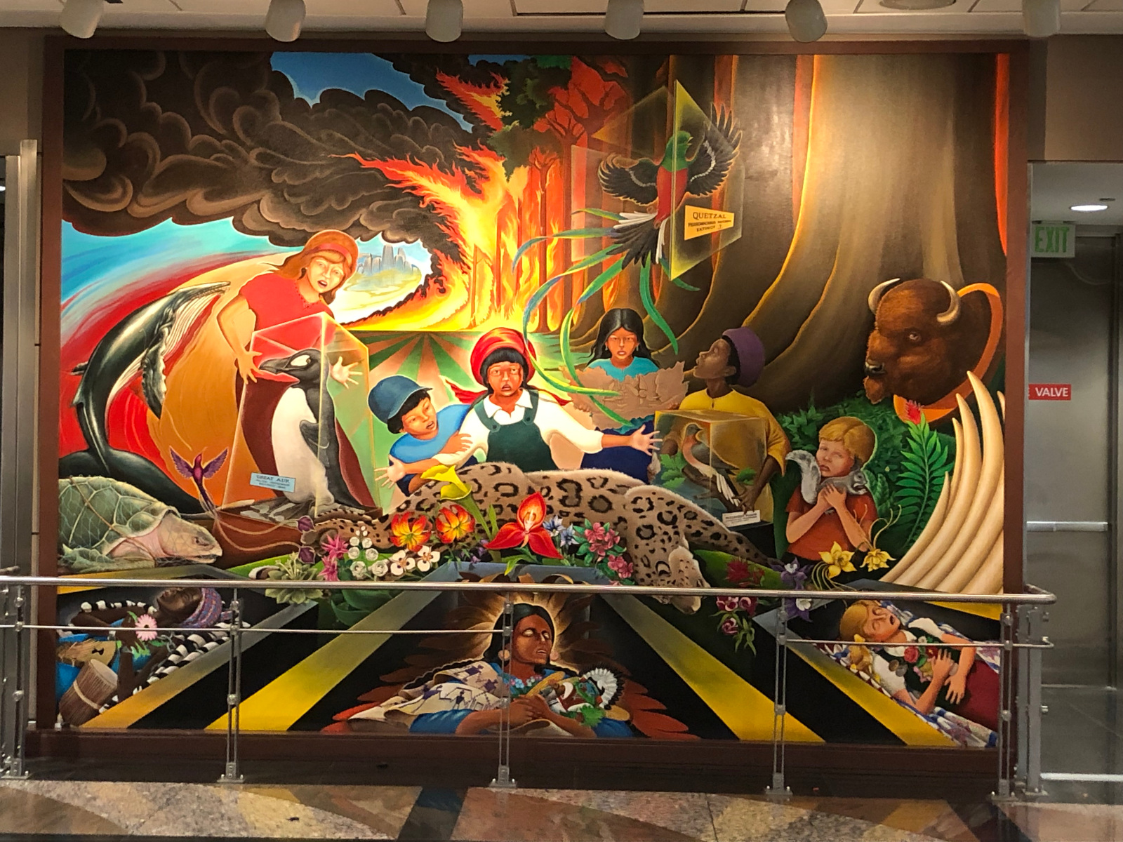 At the baggage claim, there are a total of four murals painted by artist Leo Tanguma: two “befores” and two “afters.”