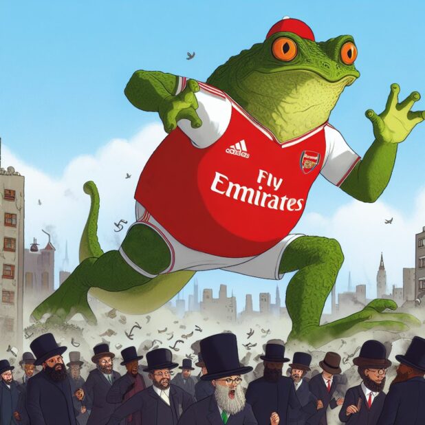 I think you really need to understand and process the gravity of this: the Daily Stormer has an official new mascot. It’s a frog in an Arsenal jersey.